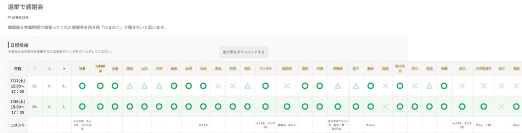 通常は、招待状で出欠を確認するのですが、今回の出欠はデジタルツール(調整さん)で行ってスムースでした。