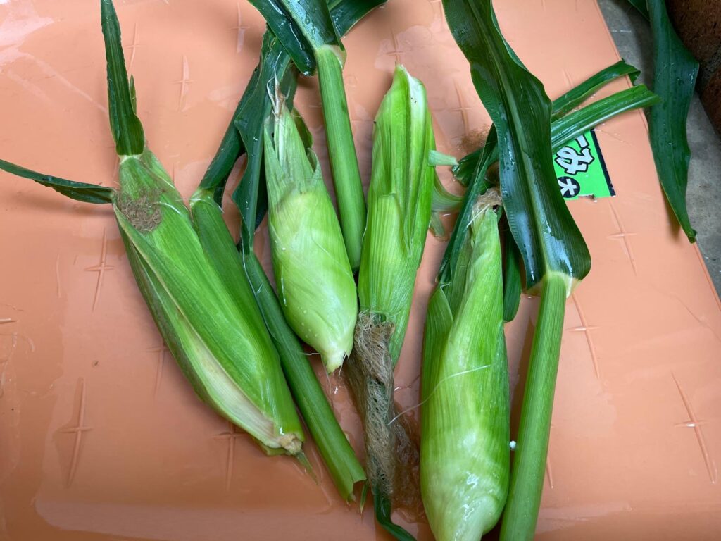 写真では中々伝わらないかもしれませんが、もやしのように細いとうもろこし🌽が収穫できました。