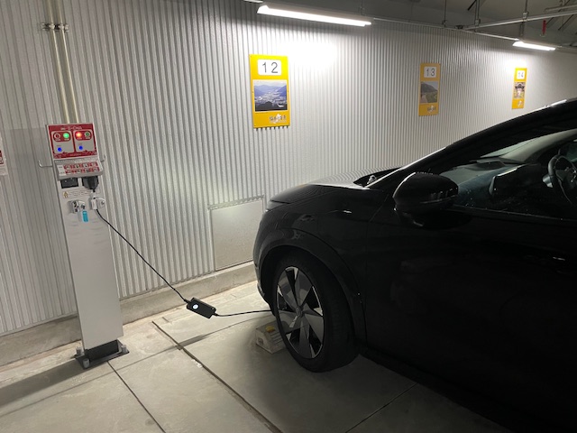 200v×3KWではありますが、無料で充電が出来ます。駐車料金は別途掛かります。