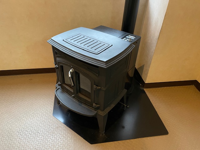 こちらもペレット型ストーブです。縦型はスリムなので、カッコいいのと場所を取りません。