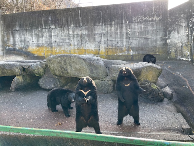 10頭ほどの熊が飼育されていました。入場者が餌を持っていると知っているので、立ち上がって「アピール」してました。