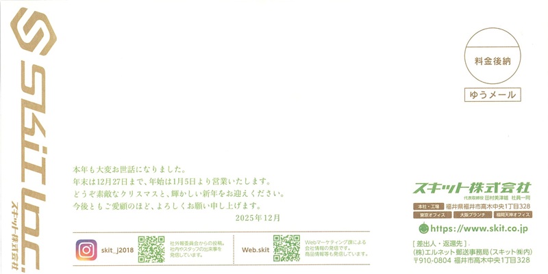 スキットでは、2024年から年賀状ではなく「クリスマスカード」を取引先様に郵送させてもらってます。